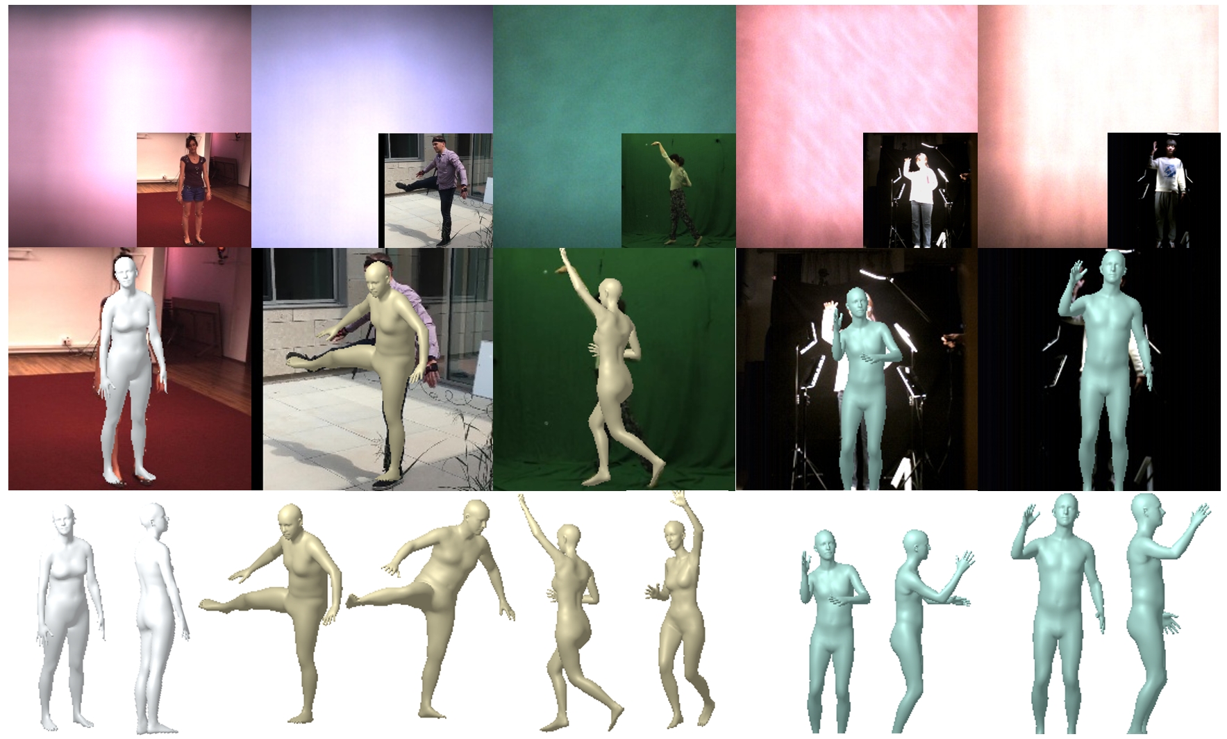 | Lensless imaging system can have a smaller size, simpler structure and stronger privacy protection attributes, and hence can be adapted to a variety of complex environments. In this paper, we propose the first end-to-end framework to recover 3D human poses and shapes from lensless measurements, to our best knowledge. |