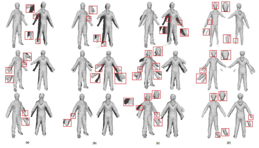 | We present a novel global non-rigid registration method for dynamic 3D objects. Our method allows objects to undergo large non-rigid deformations, and achieves high quality results even with substantial pose change or camera motion between views. In addition, our method does not require a template prior and uses less raw data than tracking based methods since only a sparse set of scans is needed. |
