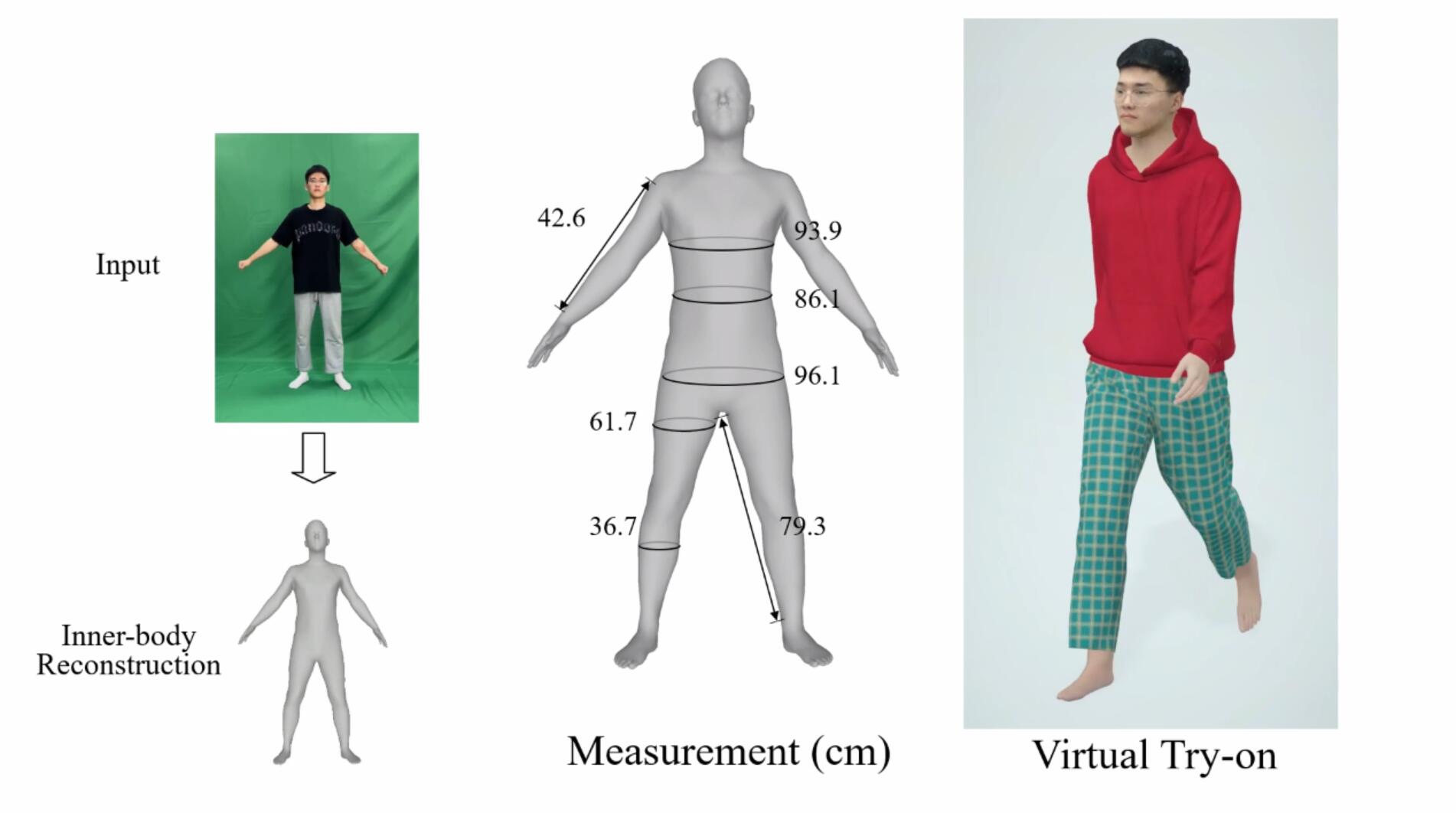 | Accurately estimating the human inner-body under clothing is very important for body measurement, virtual try-on and VR/AR applications. In this paper, we propose the first method to allow everyone to easily reconstruct their own 3D inner-body under daily clothing from a self-captured video with the mean reconstruction error of 0.73cm within 15s. This avoids privacy concerns arising from nudity or minimal clothing. |