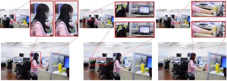 Fig. 7. Super-resolution results of Lab. From left to right: the 63rd frame result, the 65th frame result and the 67th frame result.
