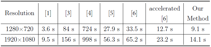 objective peak signal-to-noise ratio (PSNR). The running time of the