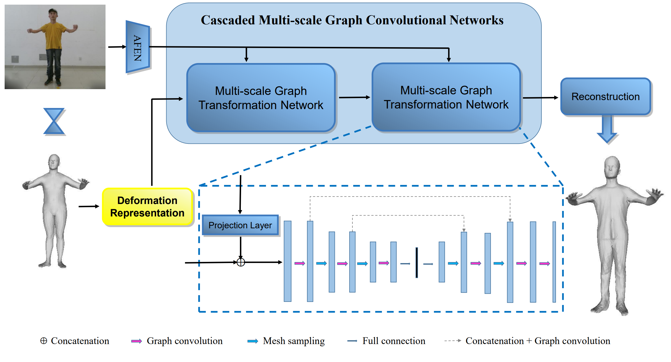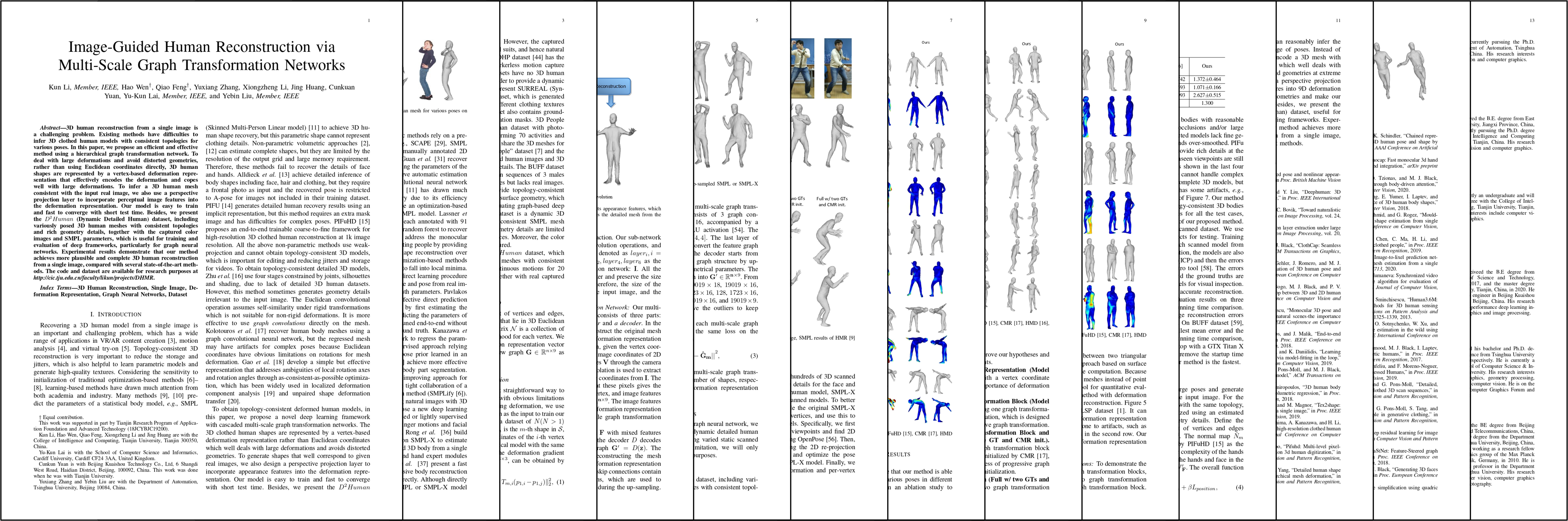 Kun Li, Hao Wen, Qiao Feng, Yuxiang Zhang, Xiongzheng Li, Jing Huang, Cunkuan Yuan, Yu-Kun Lai, Yebin Liu. "Image-Guided Human Reconstruction via Multi-Scale Graph Transformation Networks". IEEE Transactions on Image Processing, 2021