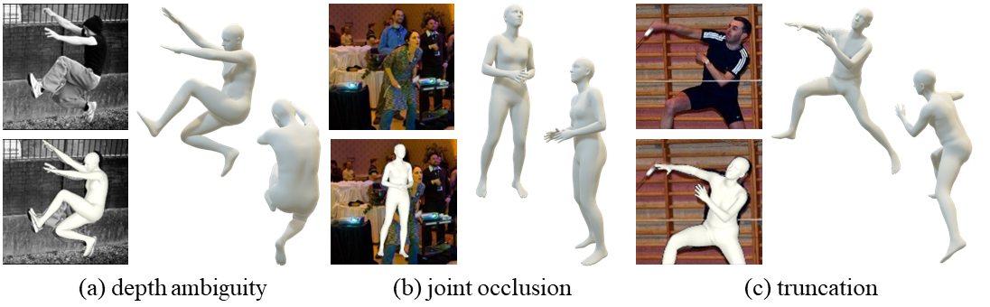 especially for ambiguous parts with depth ambiguity, joint occlusion and truncation.