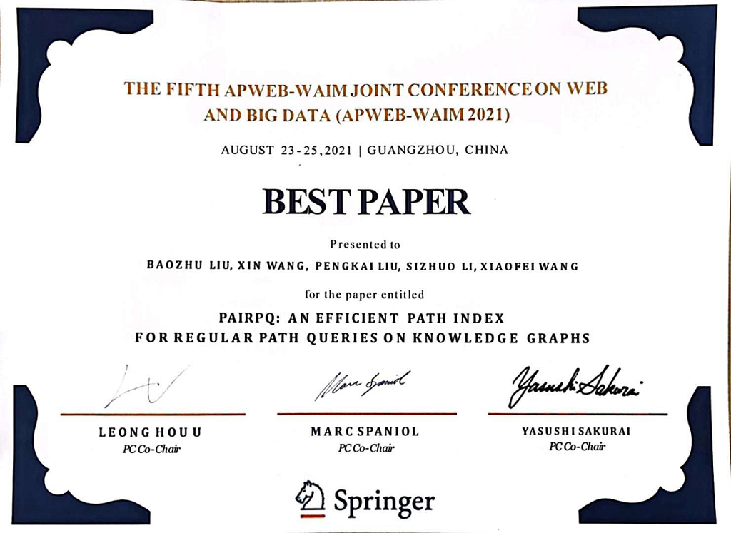2021.9 : 2021 WPEeb-WAIM Best Paper Award!!!