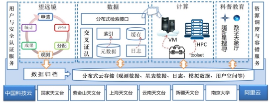 中国虚拟天文台针对国内天文观测设备与科学数据开放共享具体需求,基于云计算、高性能计算、大数据等技术,为我国天文学界研发了全面支撑天文学研究全生命周期的基础平台,该平台连接了国内主要的天文台站,支持从观测时间申请、海量天文数据归档发布、在线数据分析处理到学术成果管理等科研流程,是国际上首个实际应用的虚拟天文台,正在改变着天文学家们的科研模式。该项成果由“NAOC-TJU天文信息技术联合研究中心”研发团队牵头完成,获得2019年度天津市科技进步二等奖。