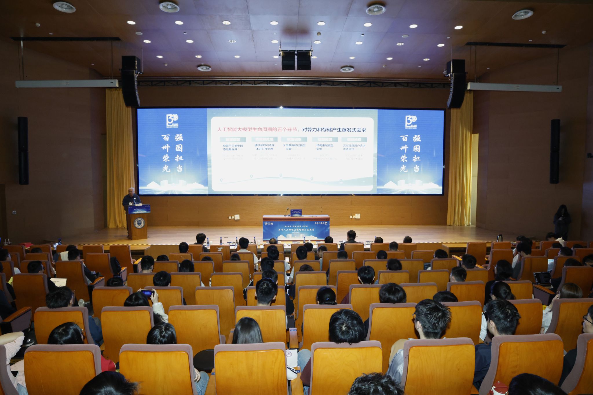 郑纬民院士作了题为《关于人工智能大模型的几点思考》的学术报告。深入浅出地讲解了2025年AI大模型的特点、人工智能大模型生命周期的环节、构建国产智算系统的核心基础软件、一个企业如何利用AI大模型等核心问题,分享了多年来在科研和产业实践中的宝贵经验。