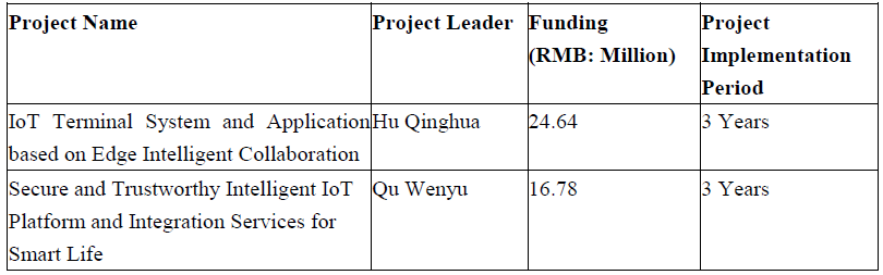 Two projects from Tianjin University’s College of Intelligence and Computing are among the list. The total funding of the two projects is up to RMB 41.42 million yuan.