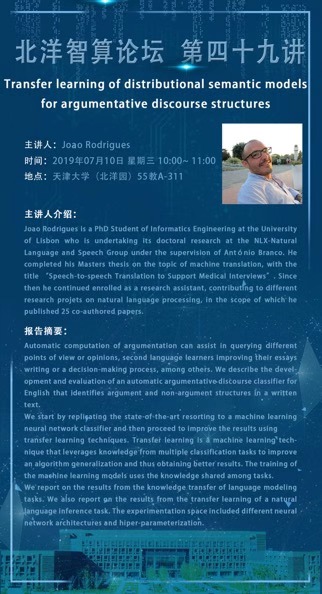 João Rodrigues is a PhD Student of Informatics Engineering at the University of Lisbon who is undertaking its doctoral research at the NLX-Natural Language and Speech Group under the supervision of António Branco. He completed his Masters thesis on the topic of machine translation, with the title “Speech-to-speech Translation to Support Medical Interviews”. Since then he continued enrolled as a research assistant, contributing to different research projects on natural language processing, in the scope of which he published 25 co-authored papers.
